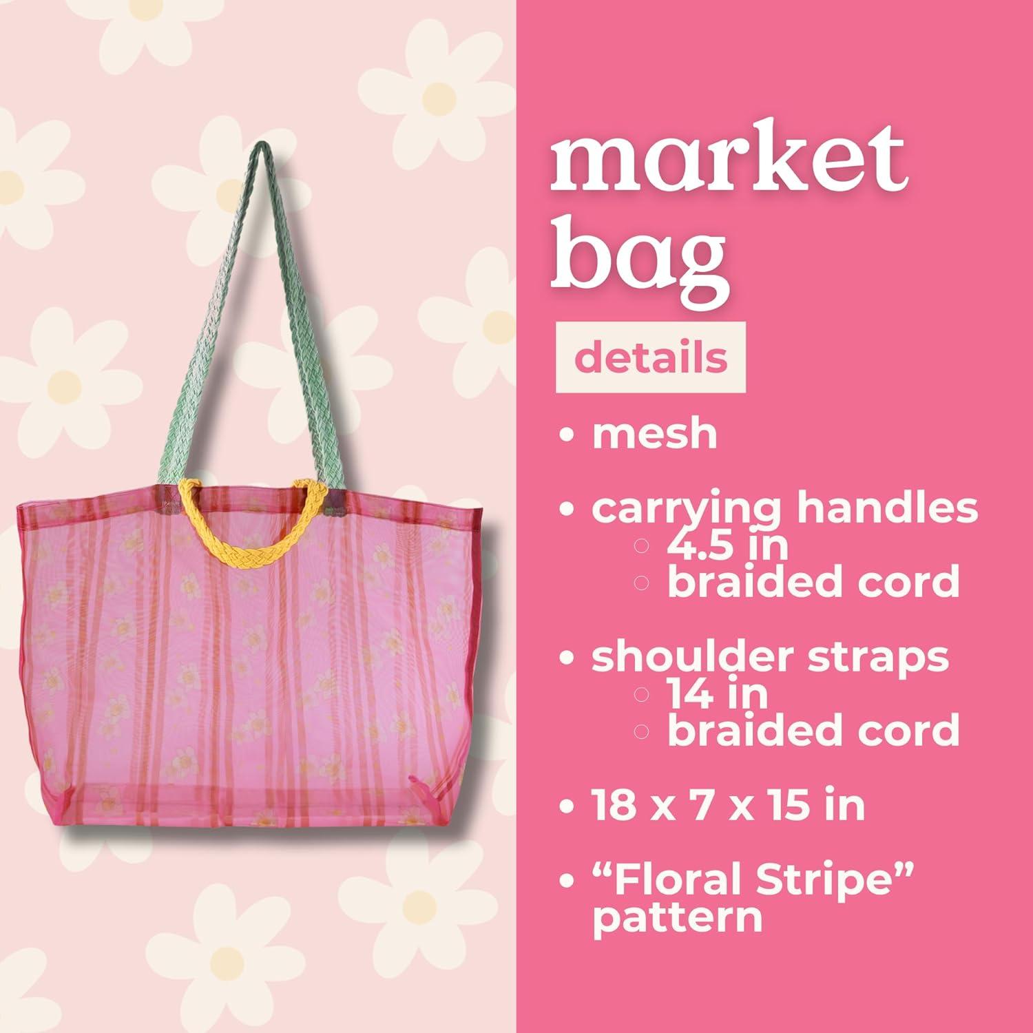 ban.do Large Mesh Market Bag, Mesh Travel and Beach Bag with Braided Double Straps, Floral Stripe