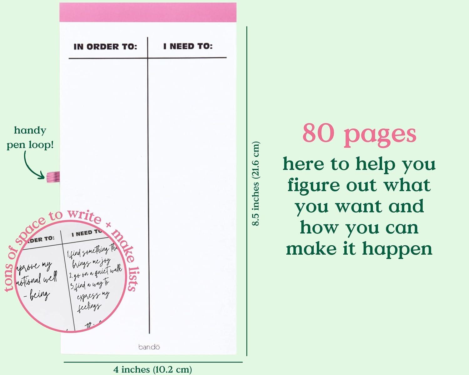 ban.do Good Intentions Goal and Habit Tracker Notepad, List Pad Includes 80 Perforated Sheets, Ink Pen Loop, and Elastic Band Closure, Feel Your Best (Pink)(Feel Your Best (Pink))