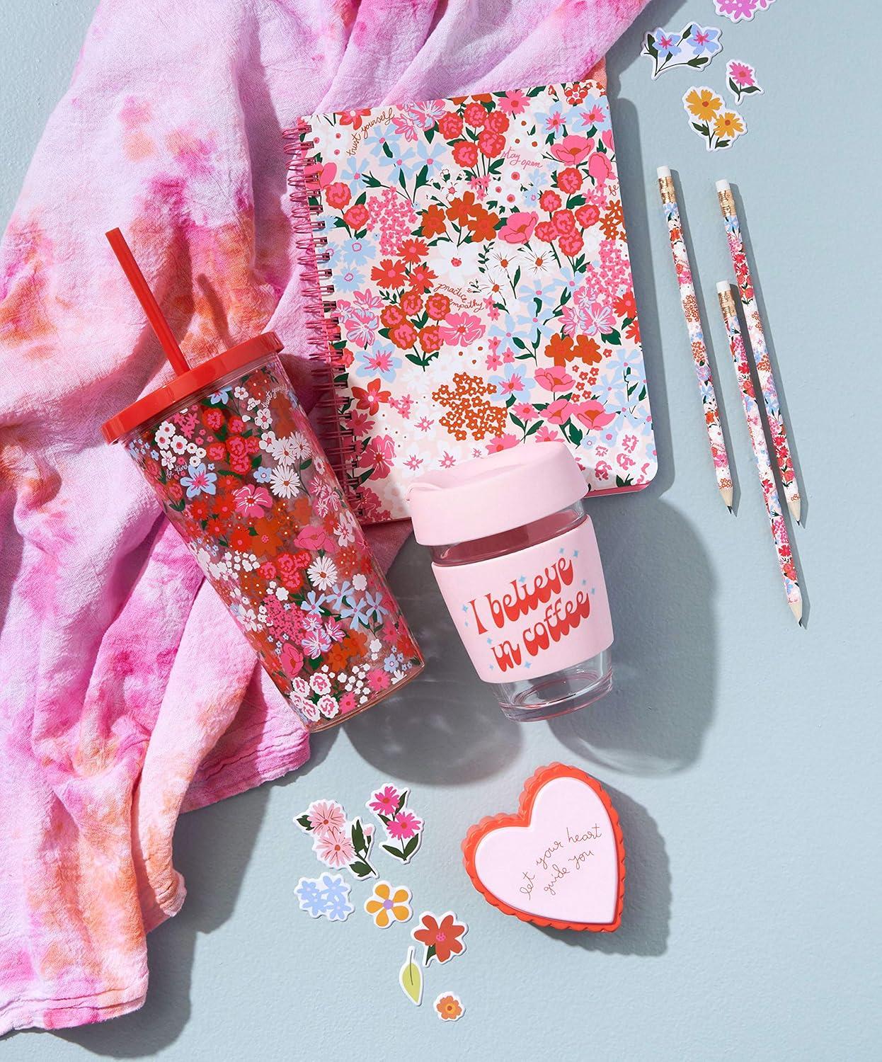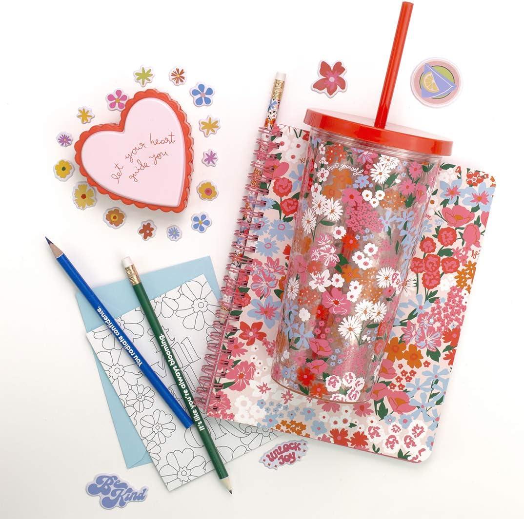 ban.do Floral Rough Draft Large Spiral Notebook, 11″ x 9″ with Pockets and 160 College Ruled Pages, Strawberry Fields(Cherry Hearts)