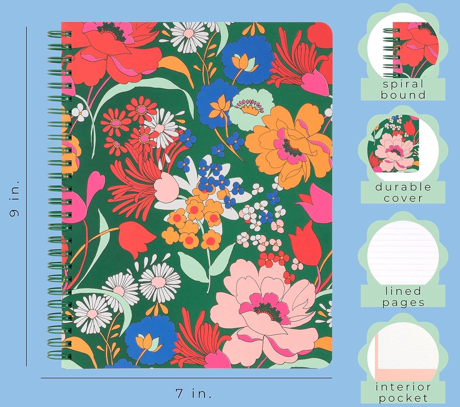 ban.do Green Floral Rough Draft Mini Spiral Notebook, 9″ x 7″ with Pockets and 160 Lined Pages, Superbloom(Superbloom)