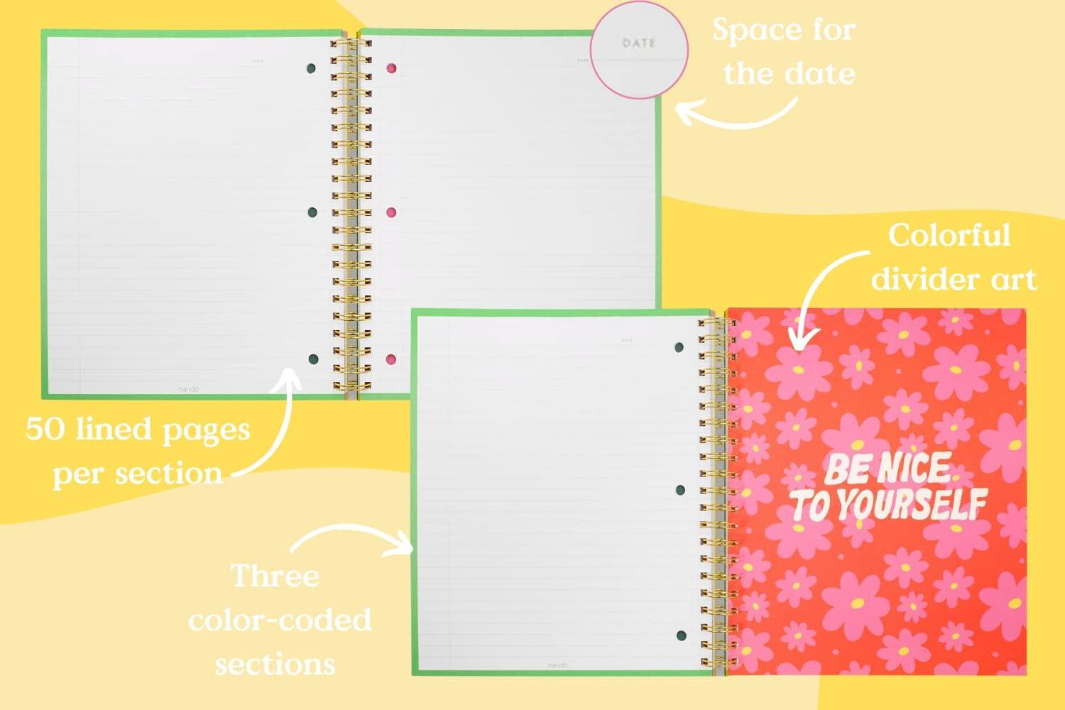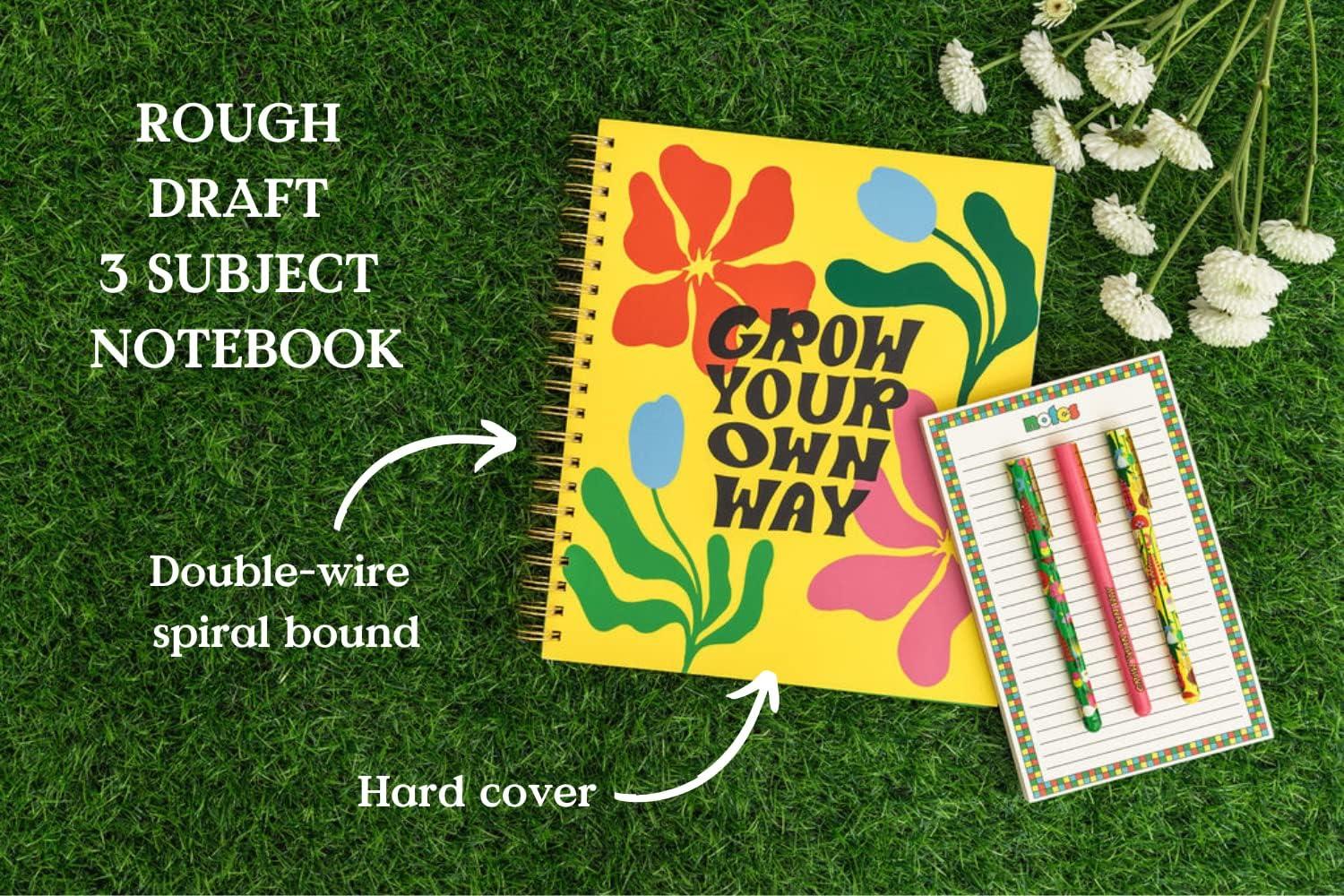 ban.do Rough Draft 3 Subject Notebook College Ruled, 11″ x 10″ Large Spiral Notebook with Pockets and 120 Lined Pages, Grow Your Own Way(Grow Your Own Way)
