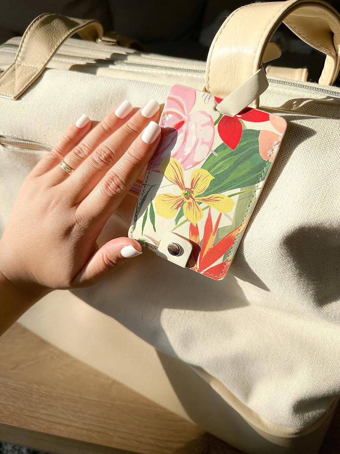 Stylish Size: Measuring 6.7 in. x 5.4 in. (approximately 17 cm x 13.7 cm), this luggage tag combines practicality with flair, ensuring your bag stands out in any crowd.